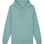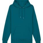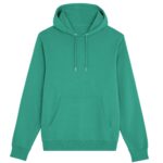 Caractéristiques : Manches montées, capuche doublée, cordon rond et œillets métalliques, bord-côtes 1×1, double surpiqûres, capuche en demi-lune au dos et poche style kangourou.