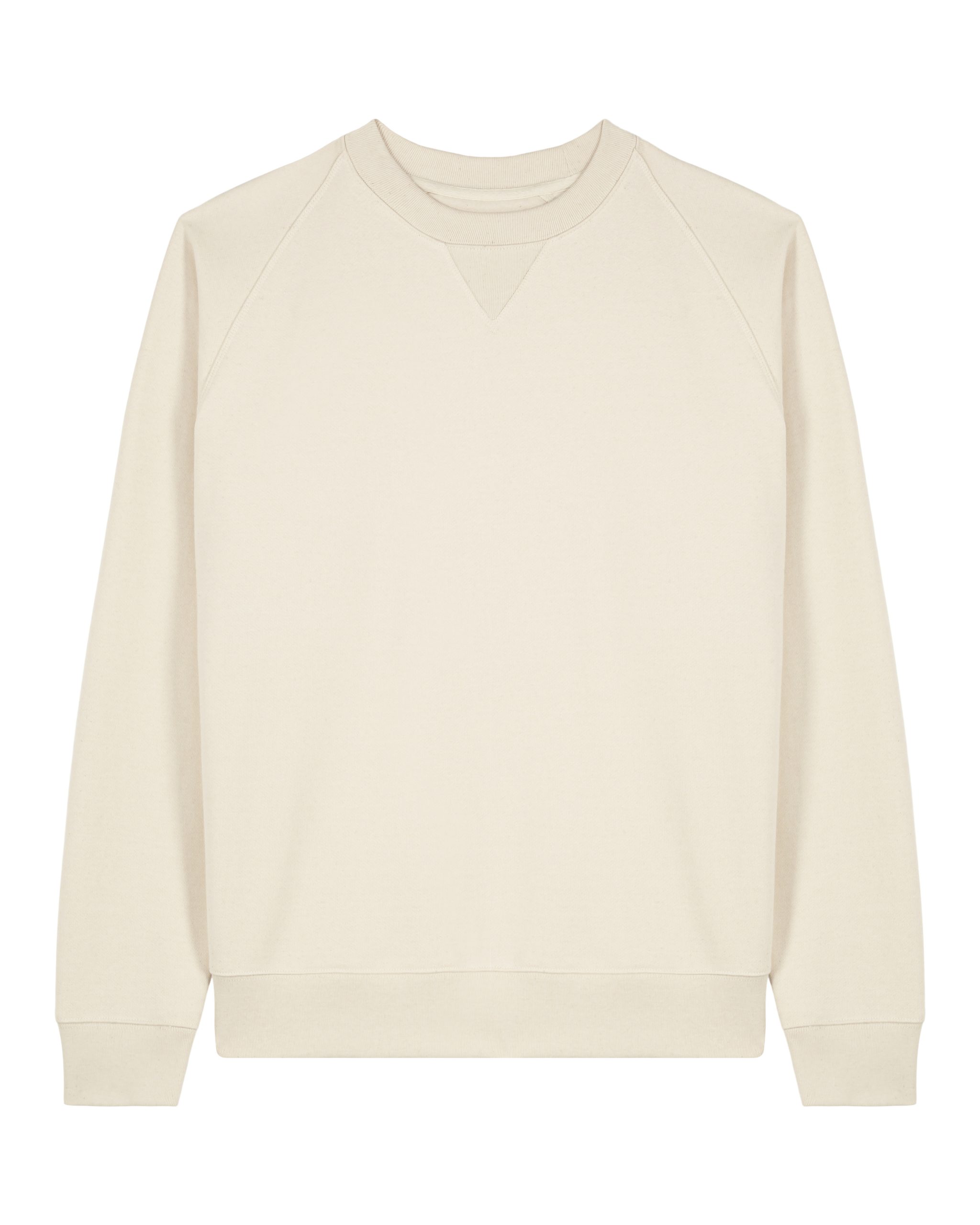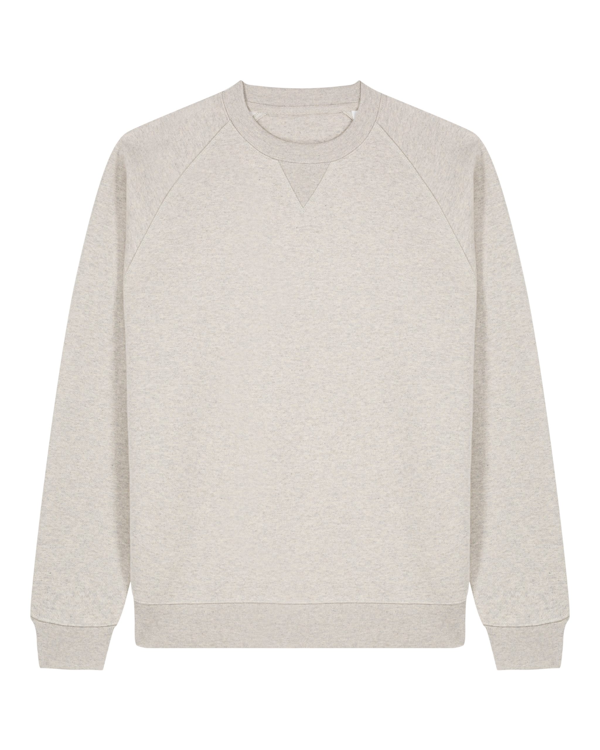 Caractéristiques : Manches raglan, bords-côtes 1×1 au col, poignets et ourlet, encolure en V côtelée, empiècements latéraux en côtes 1×1, surpiqûres doubles et coutures flatlock renforcées, avec demi-lune et bande de renfort chevron au dos du cou.