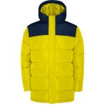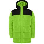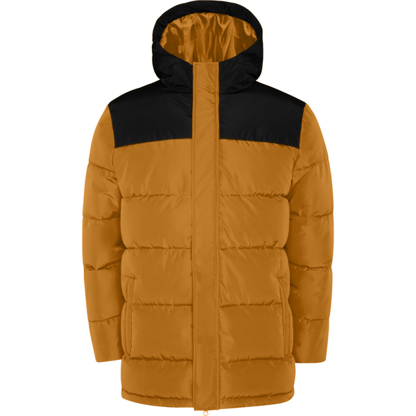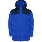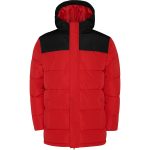 Parka matelassée déperlante avec capuche fixe et visière intégrée.